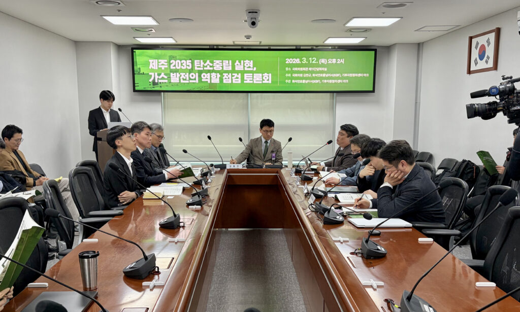 On March 12, a forum titled “Achieving Jeju 2035 Net-Zero: Reviewing the Role of Gas Power” was held at the National Assembly. Co-hosted by the Office of Representative Kim Han-kyu, Korea Beyond Fossil Fuels (KBF), and the Alliance for Resource & Climate Justice Center (ARC Center), the event aimed to address the controversy surrounding Jeju’s plan to build a new 300MW LNG power plant and to seek rational energy alternatives.